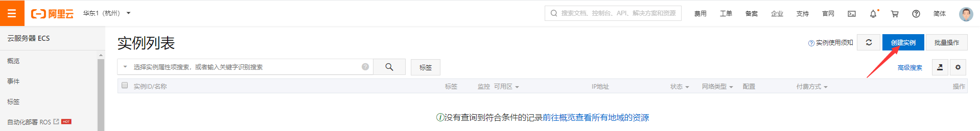 点击 云服务器ECS 后进入 云服务器管理界面 然后点击 实例